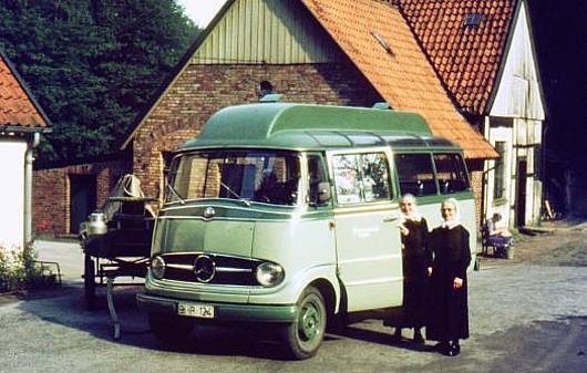 Der Bethelbus mit anstaltstypischen Diakonissen in den 1960er Jahren