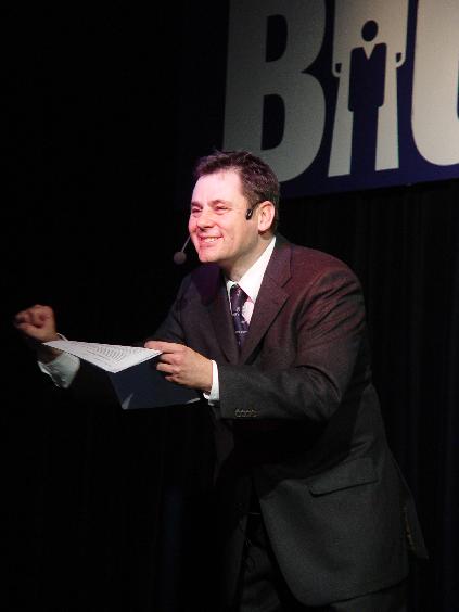 Was Gössner mit gebührendem Ernst vortrug, karikierte padeluun vom FoeBuD. Der Künstler und Datenschützer des Bielefelder Vereins zur Förderung des öffentlichen bewegten und unbewegten Datenverkehrs (FoeBuD), der alljährlich die Award-Verleihung mit großem Engagement und Aufwand veranstaltet, gab unter tosendem Beifall Friedrich Merz und dessen Ausfälle über Arbeitslose als Schmarotzer zum Besten.