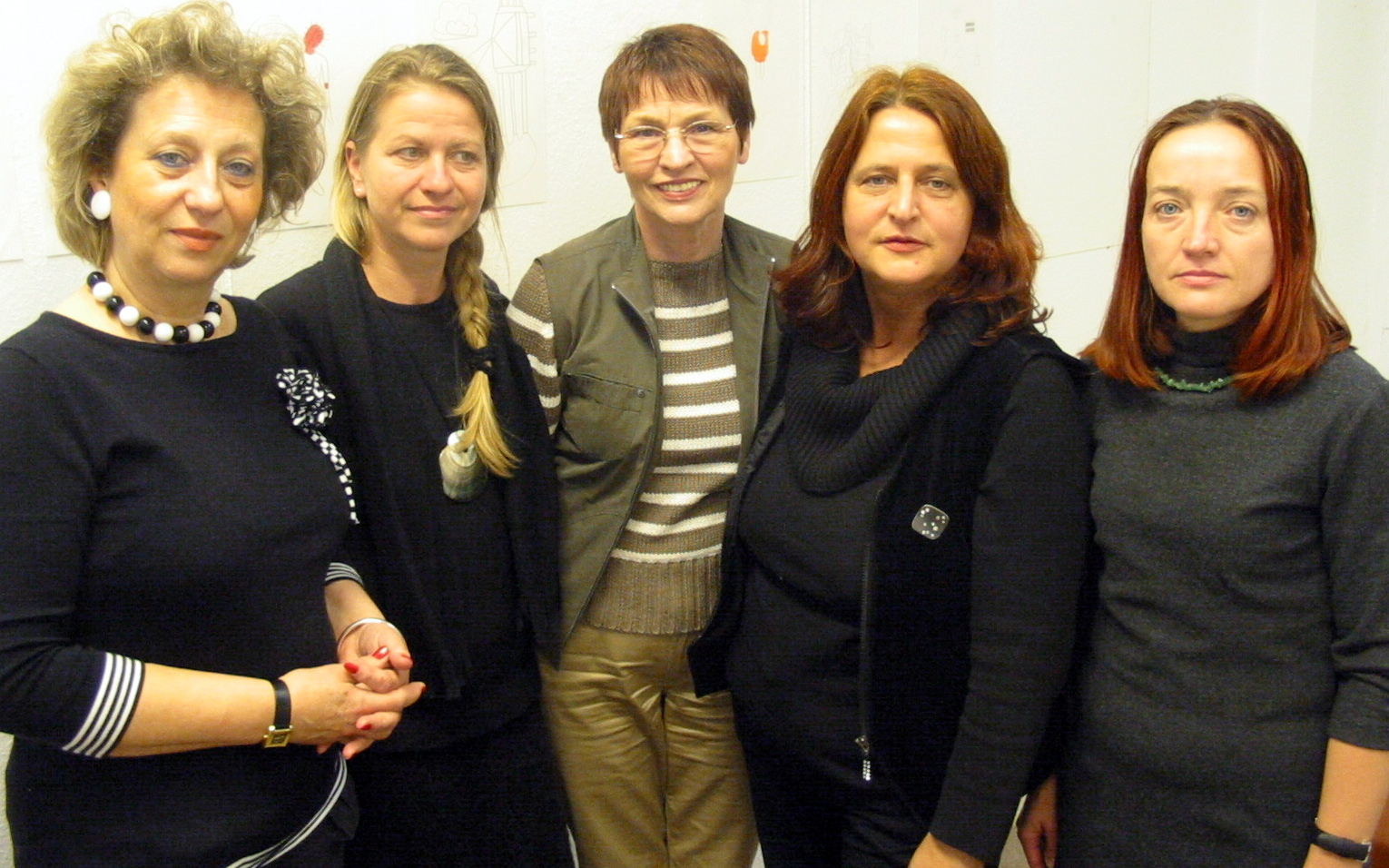 Katja Mende, Christine Ruiz, Christine Steuernagel, Birgit Engel, Rosa Marusenko (v.l.n.r.): Der harte Kern des pädagogischen Kunstprojekts