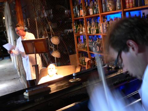 Im »Büro für Reime«, sonst Garderobe II, schreibt Carmen Priego Postkarten nach Wunsch. Unterm Dach auf dem Flaschenboden das »Labor für Geister, musikalisch«: Katharina Zoffmann, Patrick Schimanski und Harald Gieche erforschen den Gruselfaktor von H.P.Lovekraft und Percussion. Im Keller hantiert Stefan Gohlke in seiner »Werkstatt für Balladen«.